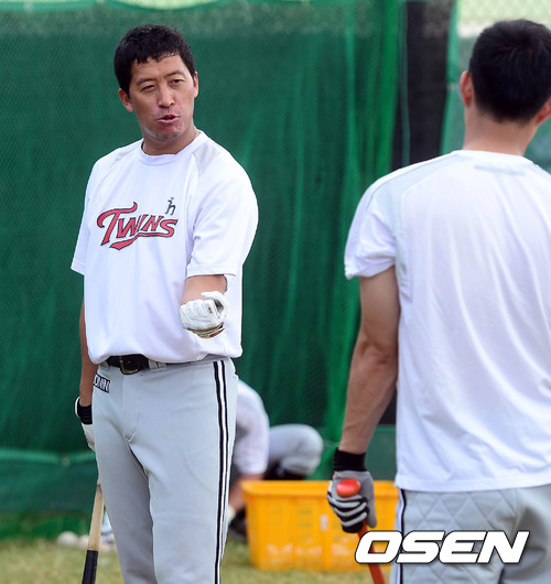 25일 오전(현지시간) 사이판 수수페 구장에서 LG 이병규와 정성훈이 훈련 중 이야기를 나누고 있다.