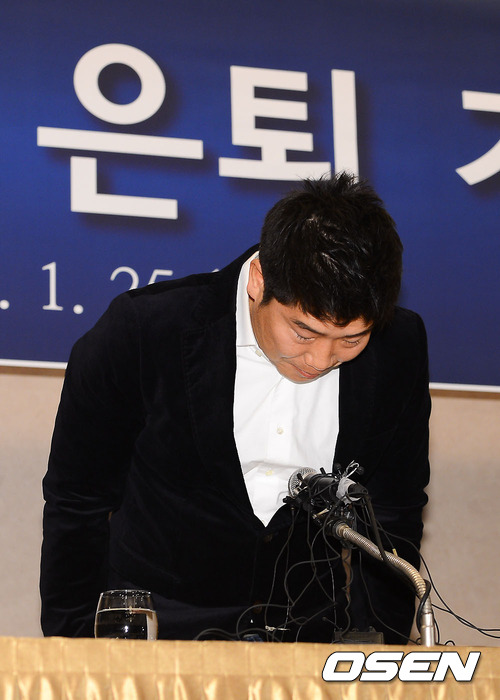 25일 오후 서울 마포가든호텔에서 진행된 박재홍(전 SK 와이번스)의 은퇴 기자회견에서 박재홍이 인사를 하고 있다.