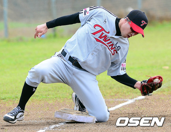 25일 오전(현지시간) 사이판 수수페 구장에서 LG 정성훈이 수비훈련을 하고 있다.