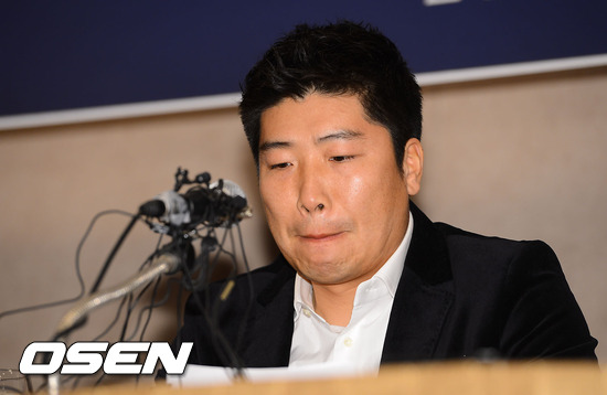 25일 오후 서울 마포가든호텔에서 진행된 박재홍(전 SK 와이번스)의 은퇴 기자회견에서 박재홍이 눈물을 보이고 있다.