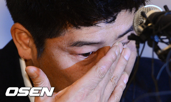 25일 오후 서울 마포가든호텔에서 진행된 박재홍(전 SK 와이번스)의 은퇴 기자회견에서 박재홍이 눈물을 보이고 있다.