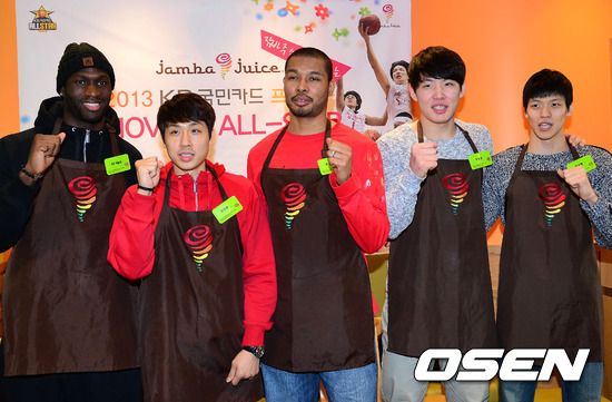 드림팀 올스타 베스트 5에 선정된 양동근(모비스), 전태풍(오리온스), 이승준(동부), 함지훈(모비스), 로드 벤슨(LG)은 잠바주스 강남점에 매직팀 올스타 베스트 5에 뽑힌 김선형(SK), 김태술(KGC), 문태종(전자랜드), 후안 파틸로(KGC) 최부경(SK)은 잠바주스 합정메세나폴리스점에서 팬들과 즐거운 시간을 가졌다./sunday@osen.co.kr