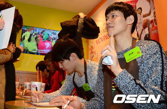 드림팀 올스타 베스트 5에 선정된 양동근(모비스), 전태풍(오리온스), 이승준(동부), 함지훈(모비스), 로드 벤슨(LG)은 잠바주스 강남점에 매직팀 올스타 베스트 5에 뽑힌 김선형(SK), 김태술(KGC), 문태종(전자랜드), 후안 파틸로(KGC) 최부경(SK)은 잠바주스 합정메세나폴리스점에서 팬들과 즐거운 시간을 가졌다./sunday@osen.co.kr
