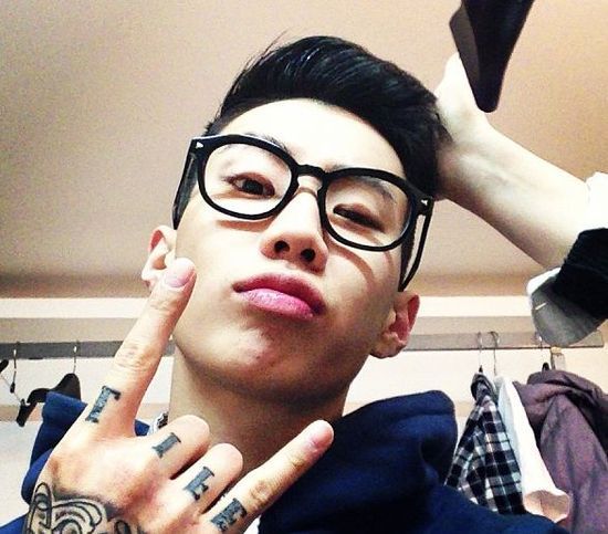 사진 속 박재범은 화려한 문신이 새겨진 손으로 강렬한 느낌의 제스처를 선보이고 있다. 그는 깔끔하게 빗어 올린 헤어스타일과 검은 뿔테 안경으로 세련된 패션 센스를 드러내고 있다.