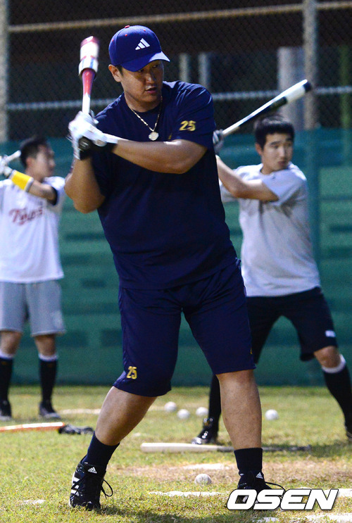 25일 오후(현지시간) 사이판 수수페 구장에서 이대호가 타격훈련을 하고 있다.