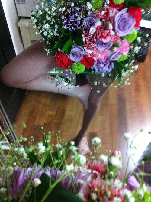 걸그룹 2NE1 박봄이 꽃다발 아래로 드러난 여신 각선미를 뽐냈다.