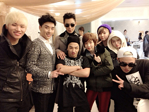 그룹 빅뱅과 걸그룹 디유닛이 가요계 다정한 선후배 인증사진을 공개했다.