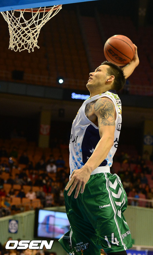 26일 오후 서울 잠실 실내체육관에서 열린 KB 국민카드 2012-2013 레전드 올스타전 하프타임에 덩크슛 콘테스트에서 이승준이 덩크를 내리꽂고 있다.