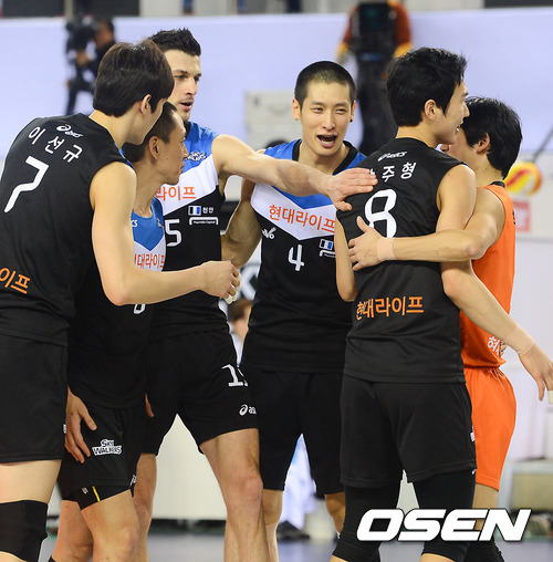 3세트 현대캐티팔 박주형의 공격 성공때 동료들이 축하하고 있다./ soul1014@osen.co.kr