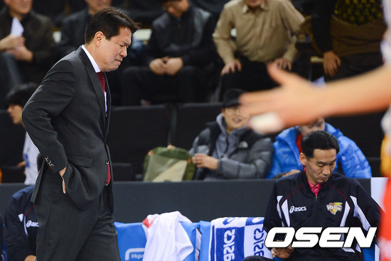 경기종료 후 패한 KEPCO 신춘삼 감독이 고개를 숙인채 아쉬워하고 있다./ soul1014@osen.co.kr