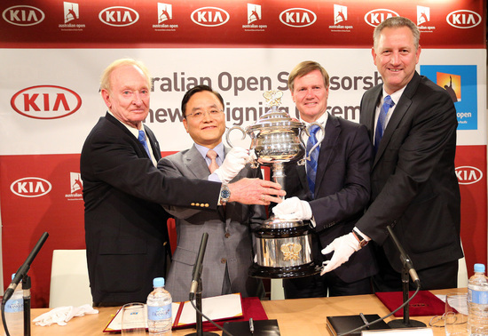 기아자동차㈜는 25일(현지시간) 호주 멜버른 파크 미디어 컨퍼런스룸에서 오태현 기아차 해외영업본부장, 스티븐 힐리(Stephen Healy) 호주오픈조직위원장, 스티브 우드(Steve Wood) 호주오픈조직위원회 CEO 및 전세계 미디어 관계자들이 참석한 가운데 ‘호주오픈 재계약 조인식’을 열었다.