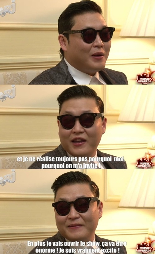 한편 NRJ에서 3관왕에 오른 싸이는 지난해 독일 프랑크푸르트에서 생중계된 유럽뮤직어워즈2012에서 한국 가수로는 처음으로 베스트 비디오 부문에서 수상했으며 제40회 어메리칸 뮤직 어워즈(American Music Awards, 이하 AMA)에서는 뉴미디어상 받은 바 있다.