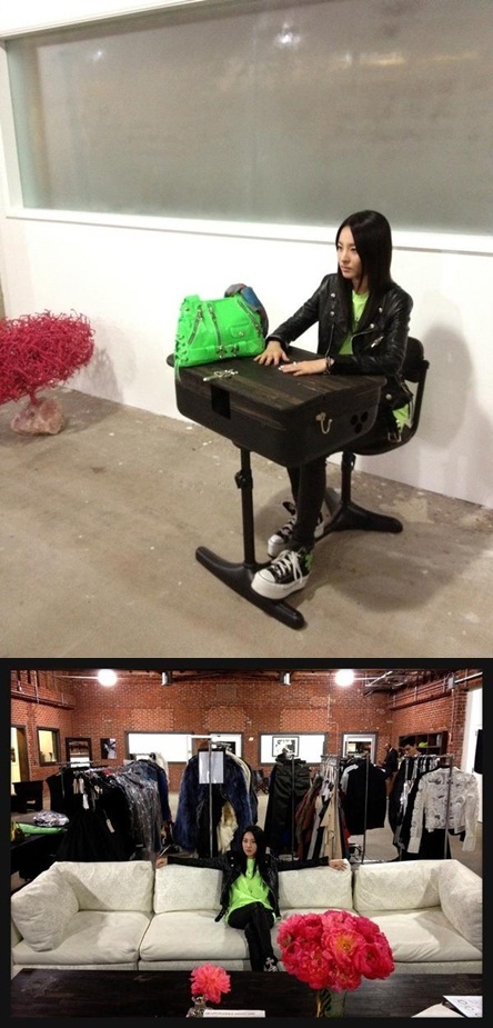 산다라박은 이어 "작년 11월 LA 크롬하츠 공장에서 찍은 사진"이라는 글과 사진 한 장을 추가로 게재했다. 사진 속 산다라박은 같은 옷차림을 한 채 공장 한 가운데 자리한 커다란 소파에서 포즈를 취하고 있다.
