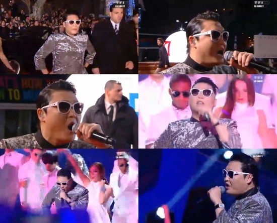 싸이는 26일(현지시간) 프랑스칸 팔레 데 페스티벌에서 열린 NRJ뮤직어워즈에서 자신의 모습을 한 대형 캐릭터가 춤을 추는 영상을 배경으로 '강남스타일'을 열창했다. 그는 NRJ뮤직어워즈 클로징과 본 행사 오프닝 무대를 맡았으며 실내, 외를 오가는 독특한 구성으로 눈길을 끌었다.