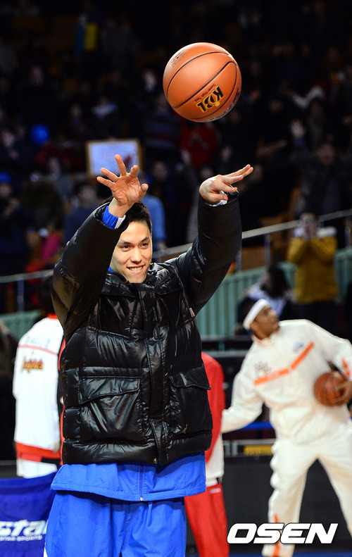 27일 오후 서울 잠실실내체육관에서 진행된 'KB 국민카드 2012~2013시즌 프로농구 올스타전에서 이동준이 팬들에게 사인볼을 던져주고 있다.