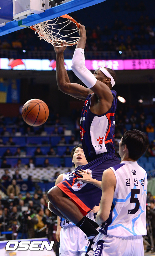 27일 오후 서울 잠실실내체육관에서 진행된 'KB 국민카드 2012~2013시즌 프로농구 올스타전에서 드림팀 벤슨이 덩크를 하고 있다.