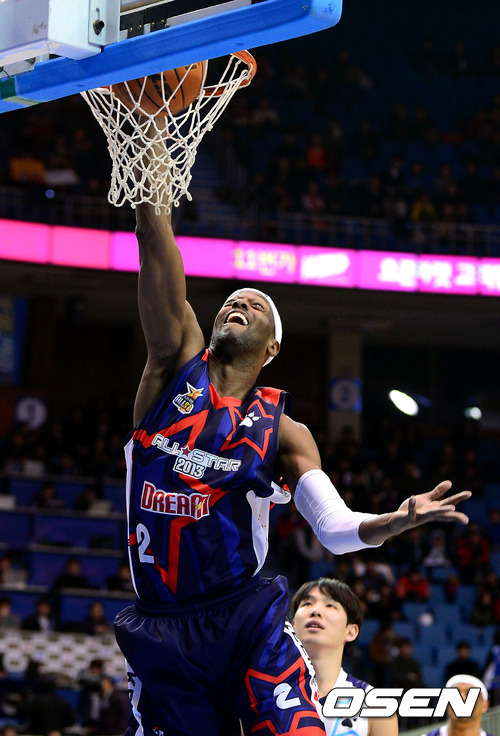 27일 오후 서울 잠실실내체육관에서 진행된 'KB 국민카드 2012~2013시즌 프로농구 올스타전, 1쿼터 드림팀 벤슨이 덩크를 하고 있다.