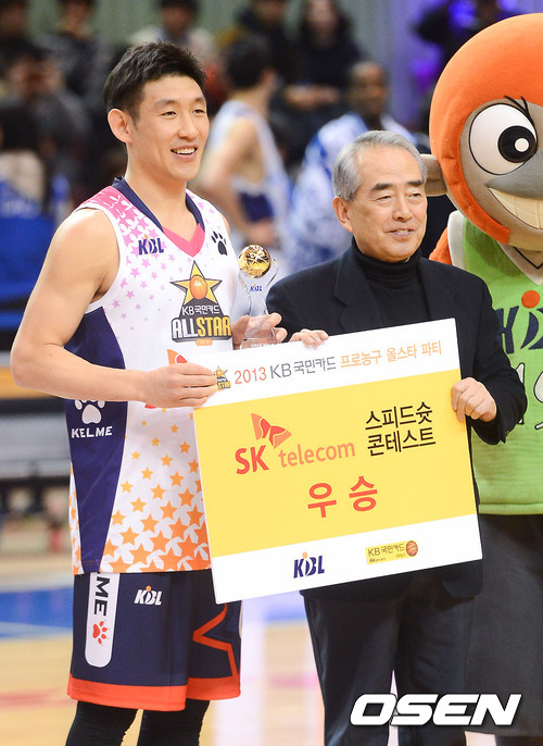 27일 오후 서울 잠실실내체육관에서 진행된 'KB 국민카드 2012~2013시즌 프로농구 올스타전, 스피드슛 콘테스트에서 양동근 우승후 시상하고 있다
