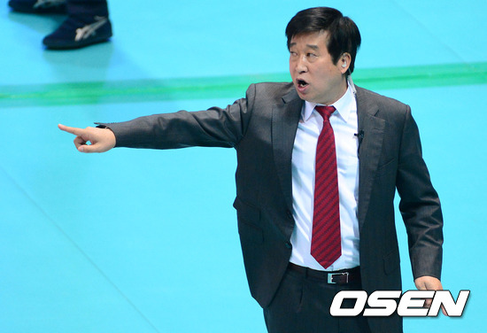 27일 오후 인천 도원체육관에서 열린 '2012-2013 NH농협 V-리그' 남자부 대한항공과 러시앤캐시의 경기, 2세트 러시앤캐시 김호철 감독이 선수들에게 작전을 지시하고 있다.