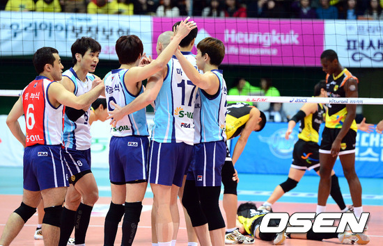 경기에 승리한 대한항공 선수들이 환호하고 있다./sunday@osen.co.kr