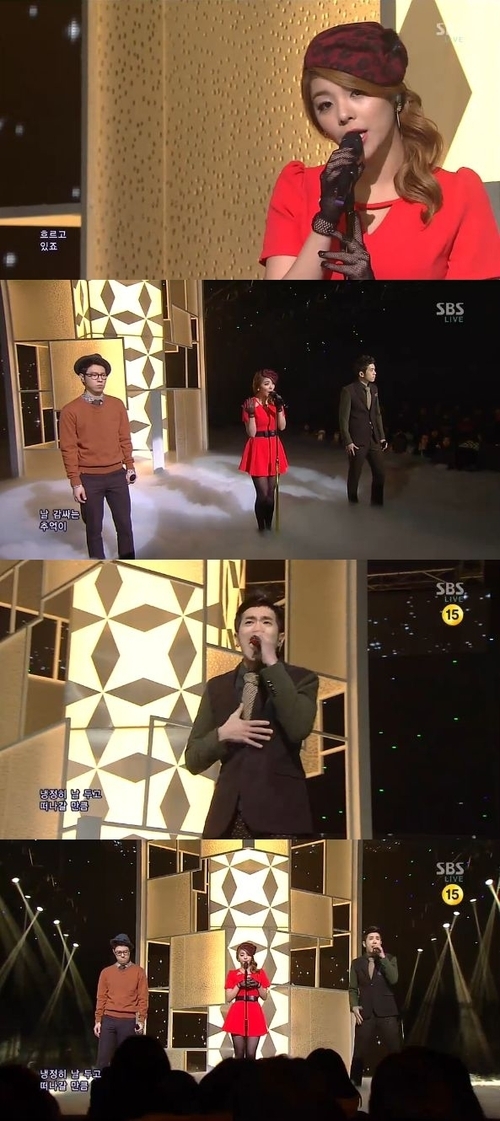 배치기는 27일 오후 방송된 SBS '인기가요'에서 에일리와 함께 '눈물샤워'의 완벽한 무대를 꾸몄다.