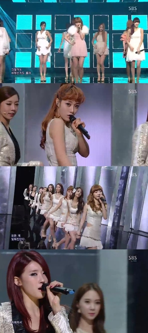 나인뮤지스는 27일 오후 방송된 SBS '인기가요'에서 '쳐다만 봐'와 '돌스(Dolls)'로 컴백스페셜 무대를 꾸몄다.