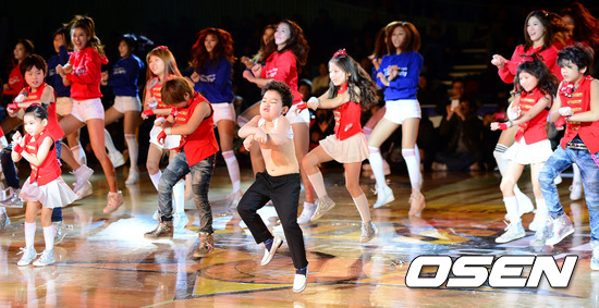 경기 종료 후 '리틀 싸이' 황민우군이 축하공연을 하고 있다. / youngrae@osen.co.kr
