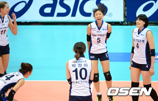 경기에 승리한 IBK기업은행 선수들이 환호하고 있다./sunday@osen.co.kr