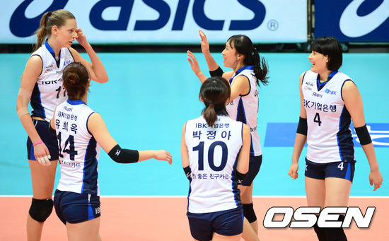 IBK기업은행은 27일 인천도원실내체육관에서 열린 NH농협 2012-2013시즌 V리그 여자부 흥국생명과 원정경기서 세트스코어 3-0(25-16, 25-22, 30-28) 완승을 거뒀다. 이날 승리로 IBK기업은행은 1승을 추가하며 승점 50점(17승 2패) 고지를 밟아 선두 독주를 이어갔다. 반면 흥국생명은 5승 13패(승점 18)로 5위에 머물렀다.