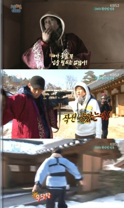 27일 방송된 KBS 2TV 주말 버라이어티 ‘해피선데이-1박2일’ 겨울방학 특집에서는 충청남도 부여에서 점심 복불복 게임으로 황산벌 전투를 하는 멤버들의 모습이 그려졌다.