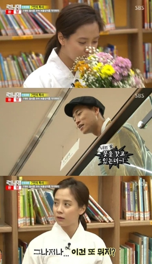 이에 송지효는 "왜 꽃만 준거냐, 이렇게 향기가 있는데"라며 발끈했다. 개리는 뒤지지 않고 "네가 꽃이 왜 필요하냐. 이미 꽃을 가지고 있는데"라는 닭살 멘트를 날리며 마음을 표현해 웃음을 자아냈다.
