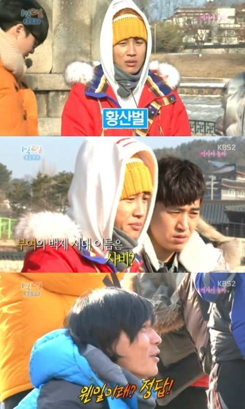 27일 방송된 KBS 2TV 주말 버라이어티 ‘해피선데이-1박2일’ 겨울방학 특집에서는 충청남도 부여에서 역사 투어를 하는 멤버들의 모습이 그려졌다.
