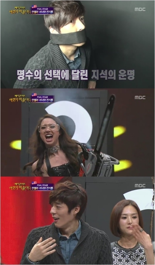 바로 서지석이 입을 막고 네 개로 마련된 방 한 곳에 들어갔고, 안젤라가 전기톱으로 무작위로 자르기 시작한 것. 네 개 중 두 개의 방이 잔인하게 잘려나간 가운데 안젤라는 마지막 톱날을 겨눴다.
