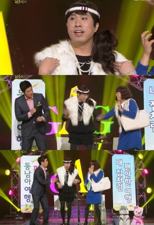 정태호는 27일 방송된 KBS 2TV ‘개그콘서트’(이하 개콘)의 코너 ‘정여사’에서 꽈당 굴욕을 당했다.