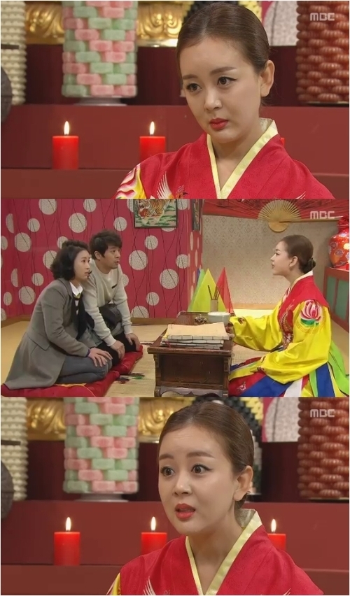 백보람은 27일 방송된 MBC 주말드라마 ‘백년의 유산’ 8회에서 엄기춘(권오중 분), 공강숙(김희정 분)이 찾은 무당집의 무당으로 열연을 펼쳤다. 기춘과 강숙은 이혼했지만 살고 있는 집이 팔리지 않아 동거 중인 사이.