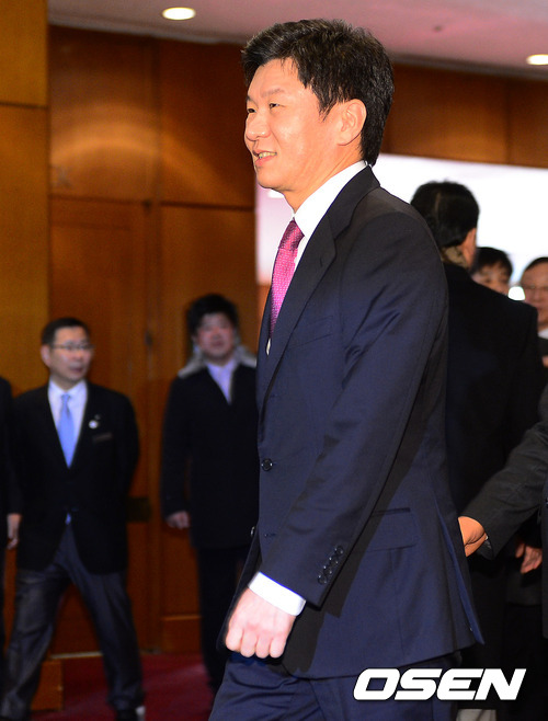 정몽규 전 총재가 총회 장소로 들어서고 있다.
