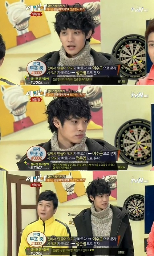 이날 정준영은 '세얼간이' 이수근과 실시간 먹기대결을 펼쳤다. 정준영은 햄버거 가게에서 햄버거 세트 사먹기 미션을, 이수근은 집에서 햄버거, 감자튀김, 음료수를 손수 챙겨 먹는 미션을 수행했다. 두 사람의 대결은 이수근의 승리로 끝났다.