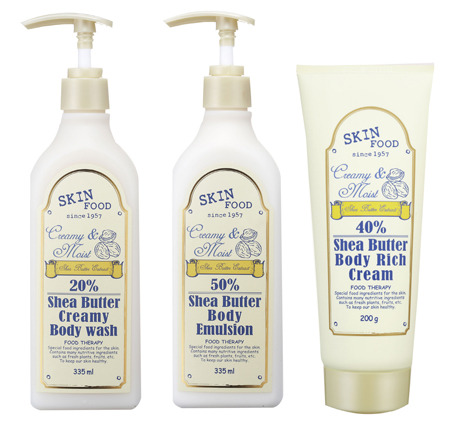 스킨푸드 시어버터 바디라인은 시어버터 크리미 바디 워시, 시어버터 바디 에멀전, 시어버터 바디 리치 크림 등 총 3종으로 구성되어 있다. 특히 천연 보습성분인 시어버터 추출물이 함유되어 겨울철 건조하고 메마른 피부에 강력한 보습 보호막을 형성해준다고 관계자는 전했다.