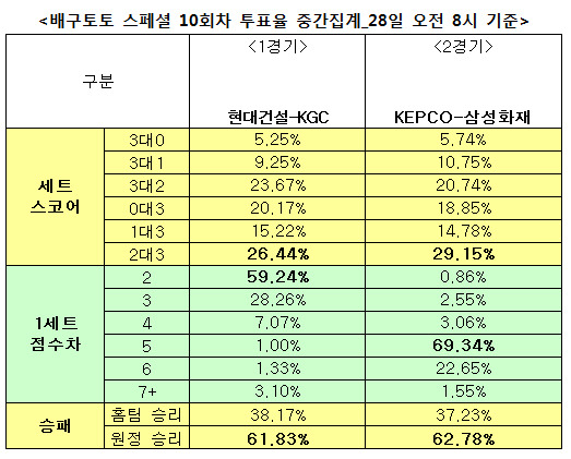 2012-2013시즌 프로배구 대상 배구토토 스페셜 10회차 중간집계 결과