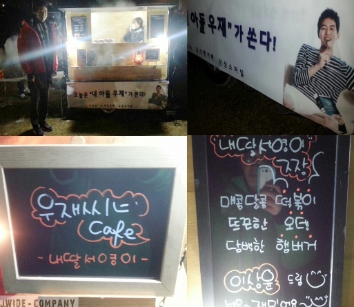 이상윤 팬클럽은 추운 날 늦게까지 촬영하고 있는 ‘내 딸 서영이’ 팀에 야식차를 선물하며 ‘내 아들 우재가 쏜다’는 현수막으로 웃음을 선사했다.
