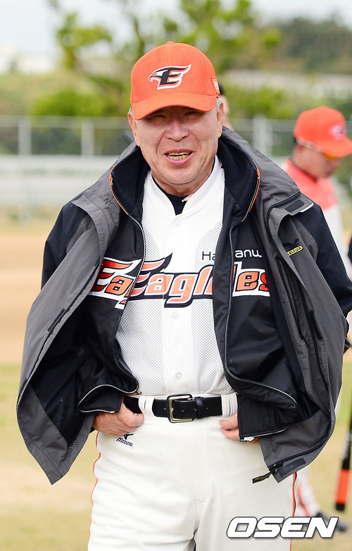 28일 일본 오키나와 고친다 구장에서 진행된 한화 이글스 2013 오키나와 전지훈련에서 김응룡 감독이 취재진을 향해 미소짓고 있다.
