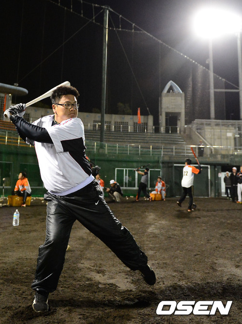 28일 일본 오키나와 고친다 구장에서 진행된 한화 이글스 2013 오키나와 전지훈련에서 야간훈련 중 김태균이 스윙을 하고 있다.