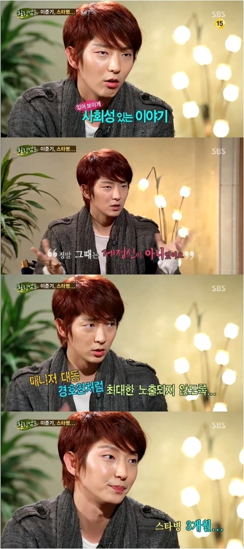 그는 “부끄럽게도 (스타병이) 있었다”면서 “그 때는 내가 아니면 안된다고 생각했다”고 말했다. 이준기는 당시 매니저 없이는 밖에도 나가지 않고, 외부와 차단된 곳에서만 밥을 먹었으며, 주변 사람들에게도 건방지게 행동했다고 솔직하게 고백했다.