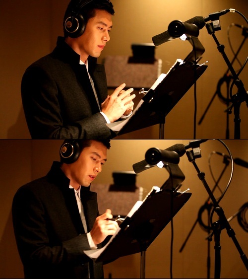 29일 삼성전자는 내레이션을 녹음하고 있는 모델 현빈의 모습을 사진으로 공개했다. 볼에 바람을 불어넣는가 하면, 연필로 연기할 내용을 체크하며 녹음에 집중하고 있는 현빈의 모습이 눈길을 끈다.