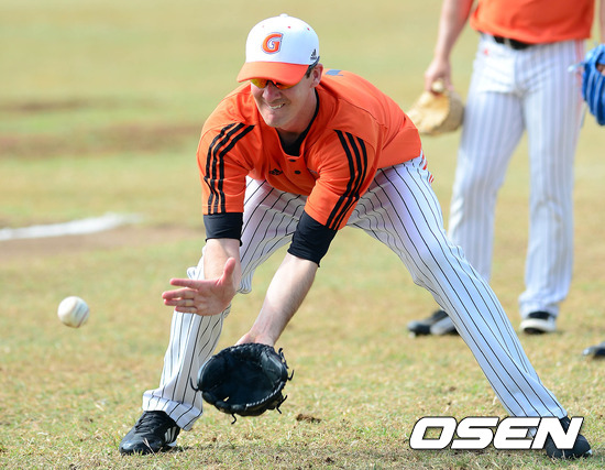 29일 오전(현지시간) 사이판 롯데 전지훈련장에서 새 용병 리치몬드가 훈련을 하고 있다.