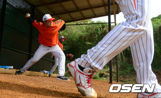 29일 오전(현지시간) 사이판 롯데 전지훈련장에서 정대현이 훈련을 하고 있다.