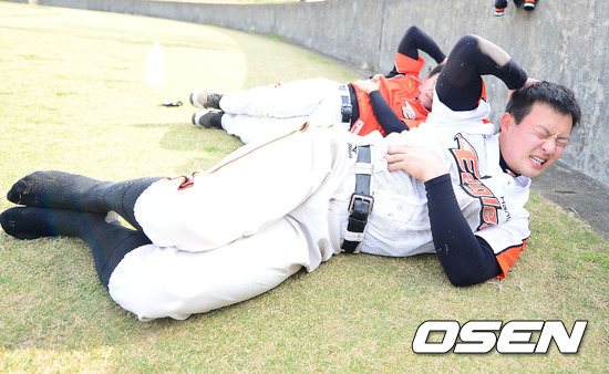 29일 일본 오키나와 고친다 구장에서 진행된 한화 이글스 2013 오키나와 전지훈련에서 이여상이 트레이닝을 받고 있다.