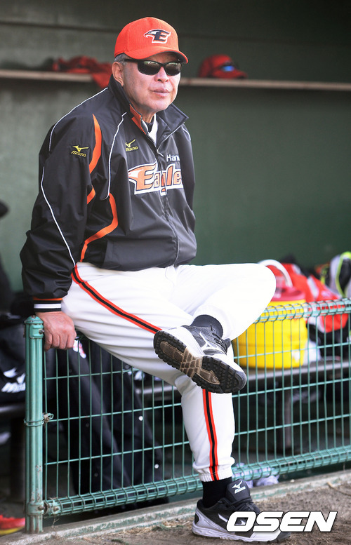 29일 일본 오키나와 고친다 구장에서 진행된 한화 이글스 2013 오키나와 전지훈련에서 김응룡 감독이 선수들의 훈련을 주시하고 있다.