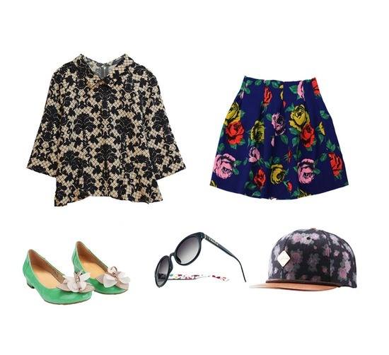 플라워 패턴이 가미된 옷이 부담스럽다면 화사한 컬러 플라워 장식이 달린 슈즈가 발랄함을 보여 줄 것이다. 안경테 안쪽에 패턴이 가미된 선글라스나 블랙 컬러에 플라워 패턴을 매치한 모자 또한 트렌디하다.