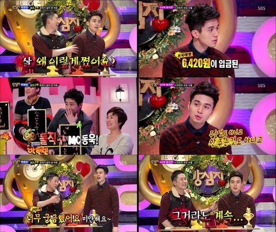 또한 시크릿 송지은이 음원 코러스 수입 등의 저작권료 덕분에 멤버 중 가장 높은 수입을 올린다고 고백하자 이동욱은 “재방송도 돈이 들어온다”면서 “저는 강심장 재방료로 6420원이 들어왔다. 이건 주는 것도 아니고 안 주는 것도 아니고. 어떻게 계산이 되는 건지 모르겠다”고 장난스럽게 말했다.